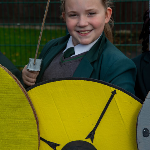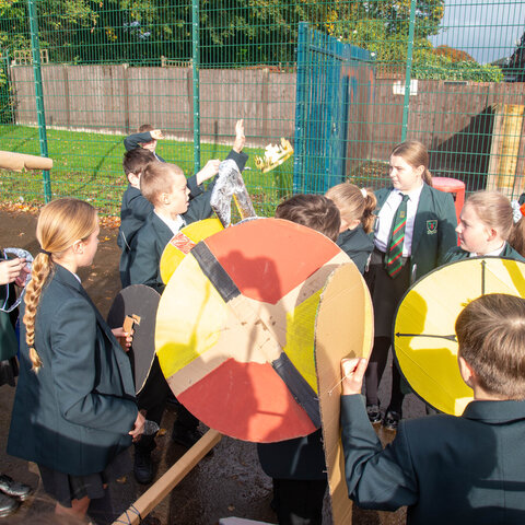 With homemade shields, banners, and plenty of enthusiasm, students took on the roles of Normans and Anglo-Saxons, led by their respective “commanders” – William of Normandy and King Harold. The re-enactment allowed students to explore key battle tactics, understand the causes and consequences of the conflict, and experience the drama of the battlefield in a fun and memorable way.