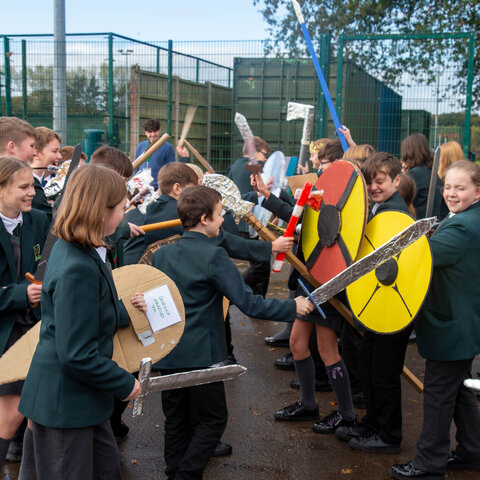 This week, our Year 7 students stepped back in time to 1066 as part of their History studies, re-enacting the famous Battle of Hastings on the school yard. The event brought energy, creativity, and a deeper understanding of one of the most significant battles in British history.